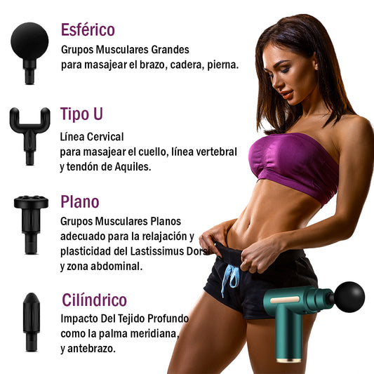 Alivio inmediato del dolor muscular con ZenShot: 4 cabezales, 8 velocidades (1600-3000 RPM). Libera tensiones, reduce rigidez y personaliza tu masaje según tus necesidades.